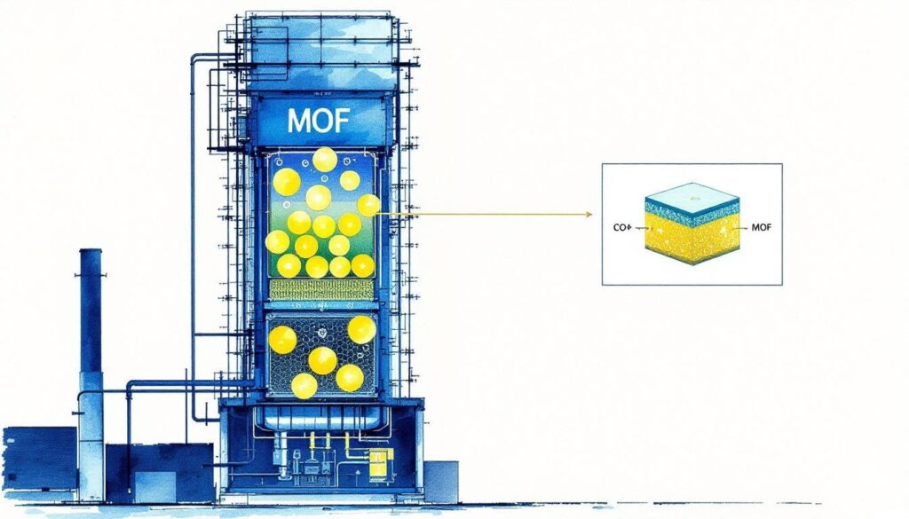 Beyond tweaks to existing chemistries, the review highlights more disruptive routes that are moving from laboratory curiosity toward pilot demonstration. Electrochemical regeneration and electroswing systems promise to replace thermal reboilers with electrically driven cycles, reducing the need for heat and enabling better coupling with renewables. Metal‑organic frameworks (MOFs) and other advanced solid adsorbents offer much higher surface areas and lower theoretical regeneration energies than liquids; they are already being piloted at industrial sites. The authors caution, however, that material stability, scalability and the ability to meet industrial purity and recovery targets remain significant barriers. The review stresses that ambitious performance goals—such as achieving 90% CO2 recovery at 95% purity—are still largely aspirational for many of these novel approaches.