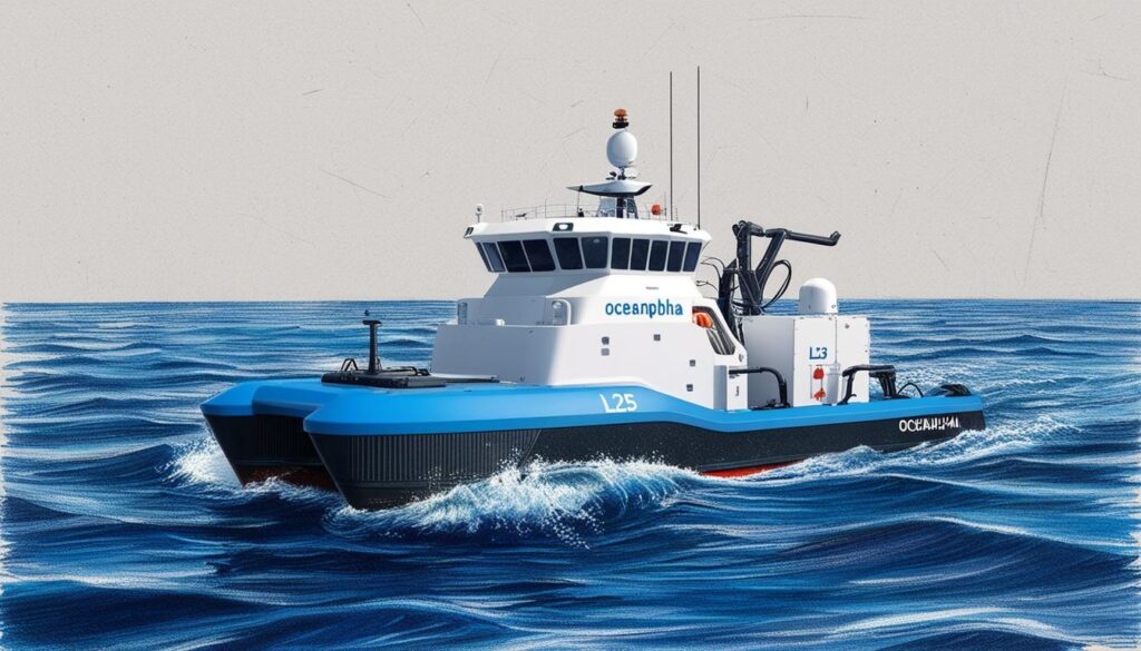 - https://www.oceanalpha.com/product-item/l25/ – The L25 is an unmanned surface vehicle (USV) developed by OceanAlpha, designed for multi-functional operations. It features a wider deck and larger payload capacity, supporting simultaneous use of multiple equipment for underwater inspection, hydrographic surveys, and oceanography surveys. The L25 offers longer endurance and high efficiency, with an internal combustion engine extending battery life to 72 hours. Its advanced design includes a small A-frame and winch for towing surveys up to 200 meters, and a foldable lifter to protect instruments. The USV provides stable working conditions with excellent stability and low noise electric plug-in thrusters. ([oceanalpha.com](https://www.oceanalpha.com/product-item/l25/?utm_source=openai))